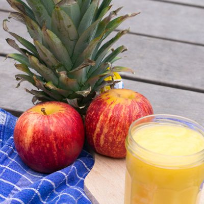 Ja ik we zitten wij ons in een appelmoes vibe. Na de gewone appelmoes, de perenmoes en de pruimen appelmoes. Besloot ik nu met de ananas die ik had liggen ananas appelmoes te maken. De perfecte tropische appelmoes voor de zomer natuurlijk. Appelmoes zelf kan natuurlijk overal bij. Er zijn zelfs mensen die het letterlijk overal bij of op eten! Zo ver gaan wij nou niet. Al vindt ik het wel lekker om zelfgemaakte appelmoes klaar in de koelkast te hebben staan. Het is een perfect tussendoortje voor de kleine man of een goede dip bij een gerecht voor het avondeten.