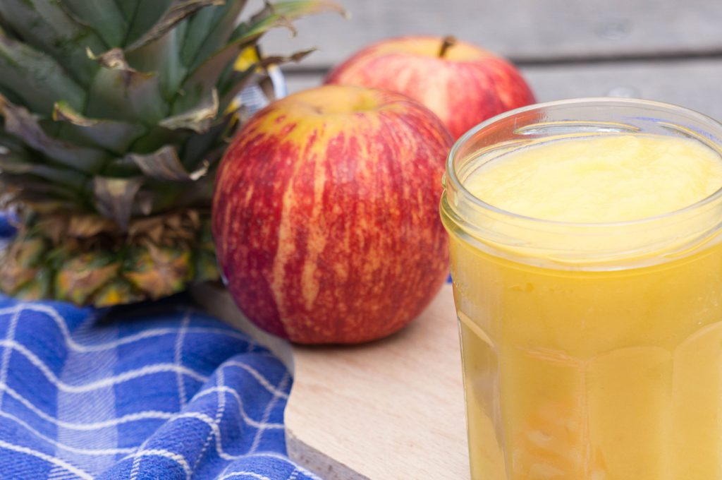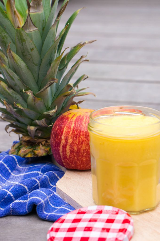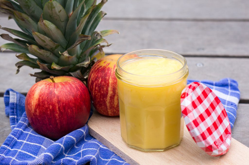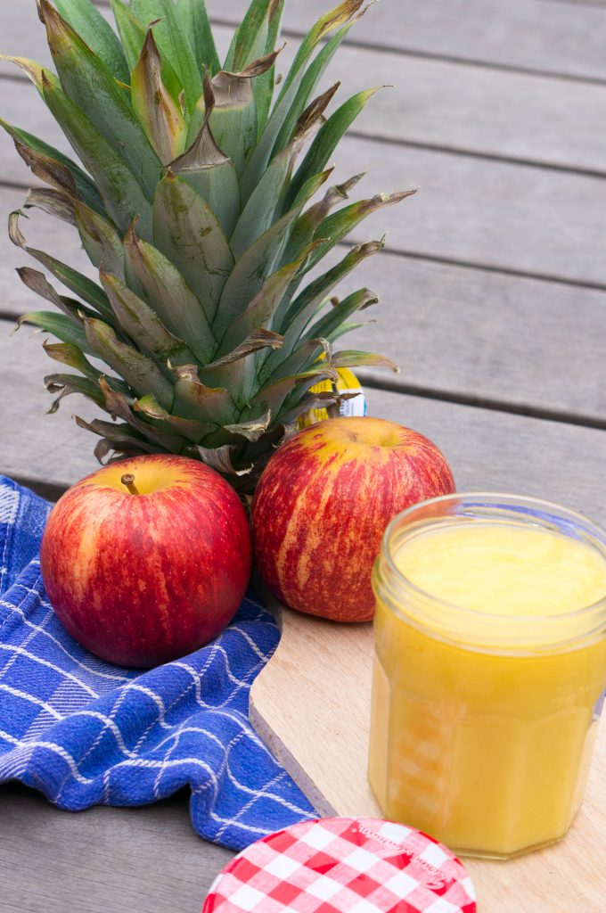 Ja ik we zitten wij ons in een appelmoes vibe. Na de gewone appelmoes, de perenmoes en de pruimen appelmoes. Besloot ik nu met de ananas die ik had liggen ananas appelmoes te maken. De perfecte tropische appelmoes voor de zomer natuurlijk. Appelmoes zelf kan natuurlijk overal bij. Er zijn zelfs mensen die het letterlijk overal bij of op eten! Zo ver gaan wij nou niet. Al vindt ik het wel lekker om zelfgemaakte appelmoes klaar in de koelkast te hebben staan. Het is een perfect tussendoortje voor de kleine man of een goede dip bij een gerecht voor het avondeten.