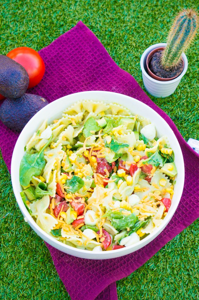 Avocado dient zich namelijk heel goed als dressing en dan nog wat gewone stukjes avocado er ook door. HEERLIJK! Zo vonden ook de kids. Nou had ik het ook weer een Mexicaanse pasta salade kunnen noemen, maar met mozzarella erin voelde het toch vreemd. Deze naam past er prima bij. Logan vond het zo lekker in elk geval dat hij twee keer opschepte en het eigenlijk de volgende dag ook nog voor lunch mee naar school wou. Ik zeg missie-mama geslaagd!
