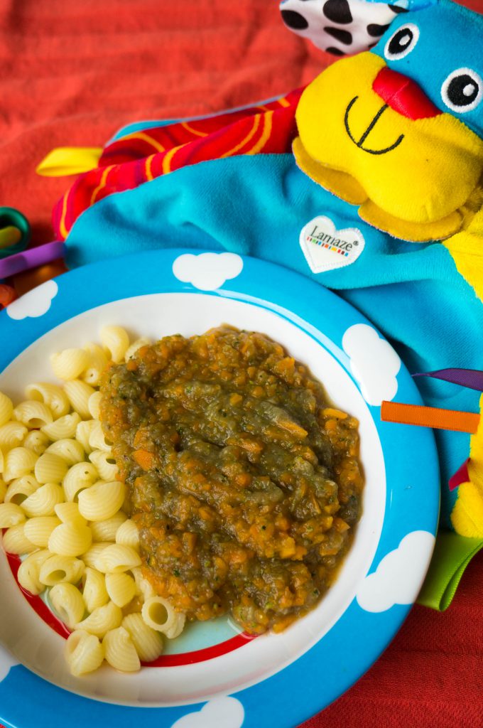 Voor het afscheid van werk maakte ik een Ratatouille Ricotta Taart natuurlijk had ik veelte veel groenten (aubergine, courgette, wortel) over. Ik besloot daarvan nog wat easy ratatouille te maken en dacht toen meteen waarom niet ook een Babyproof Ratatouille met Pasta voor mijn baby.