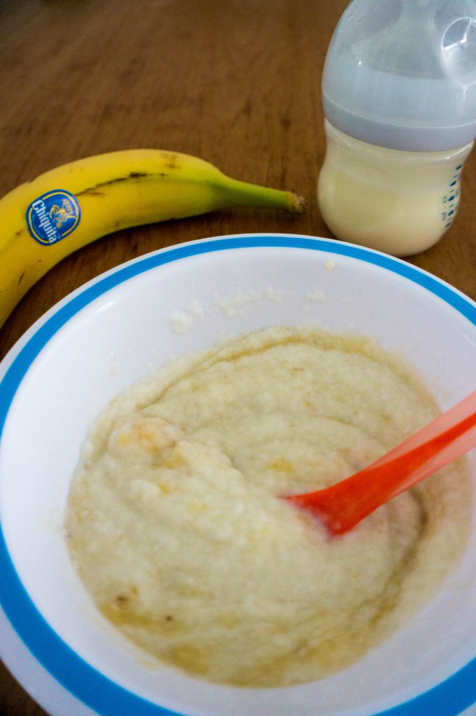 Voor baby Logan zijn eerste introductie met pap, maakte ik de pap maar met een halve fles. Op die manier kon hij wennen aan een nieuwe smaak en structuur. Daarnaast had ik nog een flesje achter de hand.