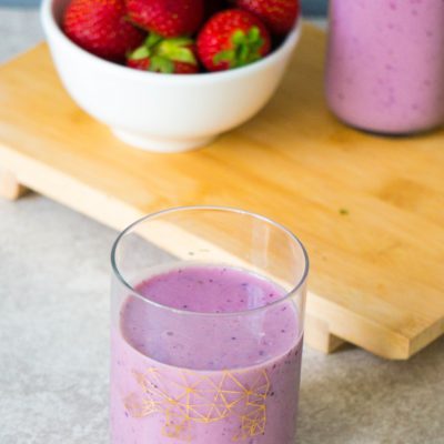 Fristi is zo’n drankje waar mijn kinderen dol op zijn, maar eigenlijk alleen buiten de deur krijgen. Als we in een restaurant zijn of een dagje weg en heel zeldzaam met bijvoorbeeld de feestdagen dan haal ik het wel eens in huis. Gezien ik de laatste tijd dagelijks bijna fristi’s maak besloot ik eens een fristi smoothie te maken. Diepvries roodfruit met wat melk en honing, drie ingrediënten die wij altijd in huis hebben.