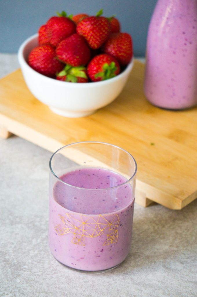 Fristi is zo’n drankje waar mijn kinderen dol op zijn, maar eigenlijk alleen buiten de deur krijgen. Als we in een restaurant zijn of een dagje weg en heel zeldzaam met bijvoorbeeld de feestdagen dan haal ik het wel eens in huis. Gezien ik de laatste tijd dagelijks bijna fristi’s maak besloot ik eens een fristi smoothie te maken. Diepvries roodfruit met wat melk en honing, drie ingrediënten die wij altijd in huis hebben.