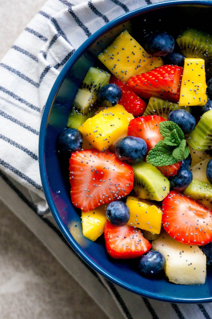 Op zoek naar een fris nagerecht voor na de barbecue? Maak eens deze heerlijk makkelijke Fruitsalade met Maanzaad-Citroen Dressing.