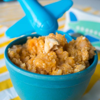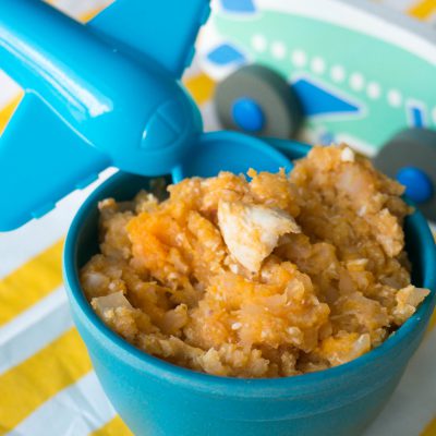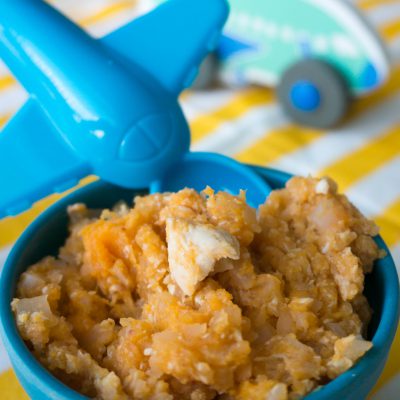 Ik kwam er al snel achter dat de smaak wel wat weg heeft van bloemkool en dat deed me besluiten een koolrabi stamppot te willen maken. Koolrabi is een knol die in de lente en zomer voorkomt en om een zomerse stampot te maken wou ik het doen met zoete aardappel. Nog wat kip erdoor heen en voilá een lekker maaltje voor onze kleine met een vergeten groenten.