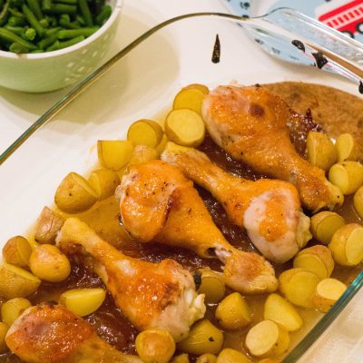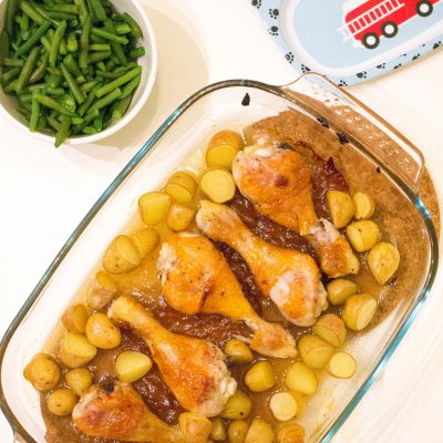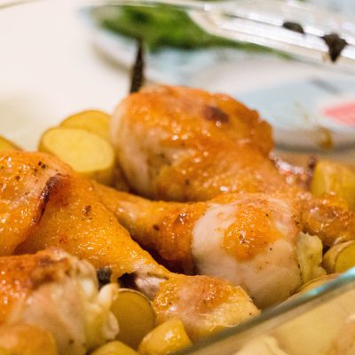 Ken je dat: een goed gevulde voorraadkast vol met potjes, zakjes, pakjes, blikjes en noem het maar op. Dat je af en toe eens de datums moet controleren of uberhaupt wat je hebt. Een keer in de zoveel maanden neem ik daarom eens mijn keukenkastjes eens goed onder handen en zo trof ik laatst maar liefst twee potten mango chutney. Hoe ik er aan kom? Geen idee, je zou zeggen je koopt het zelf. Ik kan mij echter de laatste keer dat wij mango chutney aten niet meer herrinderen. Tijd dus om eens wat te doen. Ik maakte mango sticky kippenpoten met aardappeltjes en sperziebonen. Een gerecht wat nog geen 10 minuten werk is en wel nog 30 minuten in de oven moet. Super voor een doordeweekse maaltijd.