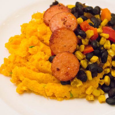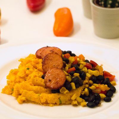Het is lente, mag de stamppot dan nog wel? In een land als Nederland waar het weer zo wispelturig is zeg ik; ja! Wel probeer ik richting de lente te zoeken naar minder Winterse stamppotten. Ik denk dan aan bijvoorbeeld andijviestamppot maar ook alternatieve stamppotten als dit recept; Mexicaanse stamppot. Aller eerst gebruik ik zoete aardappel in plaats van de gewone aardappel. Wel komt de bekende Hollandse rookworst te pas, maar ook deze bak ik in plaats van op warmen. Voor de groente? Een Mexicaanse bonenmix. Eens wat anders of eerder een ander soort winterkorst. Eet smakelijk.