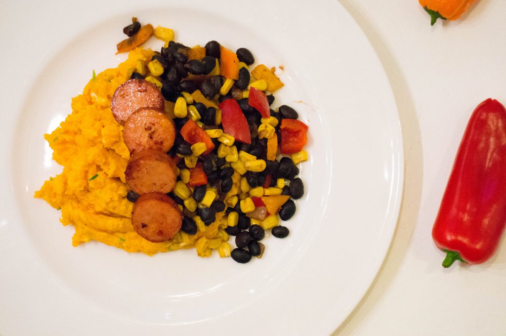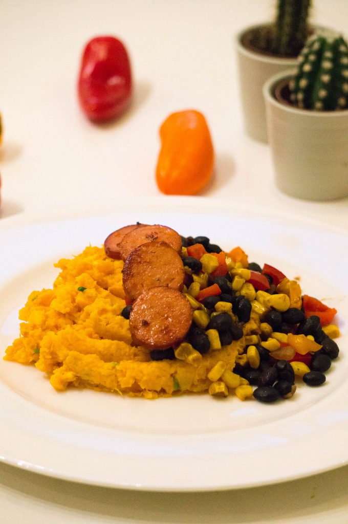 Het is lente, mag de stamppot dan nog wel? In een land als Nederland waar het weer zo wispelturig is zeg ik; ja! Wel probeer ik richting de lente te zoeken naar minder Winterse stamppotten. Ik denk dan aan bijvoorbeeld andijviestamppot maar ook alternatieve stamppotten als dit recept; Mexicaanse stamppot. Aller eerst gebruik ik zoete aardappel in plaats van de gewone aardappel. Wel komt de bekende Hollandse rookworst te pas, maar ook deze bak ik in plaats van op warmen. Voor de groente? Een Mexicaanse bonenmix. Eens wat anders of eerder een ander soort winterkorst. Eet smakelijk.