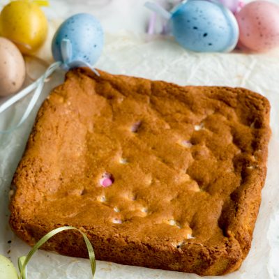 Bak de blondies voor 20-25 minuten tot de randen goudbruin beginnen te worden. | Laat de Paas M&M blondies iets afkoelen voor je hem aansnijd. |