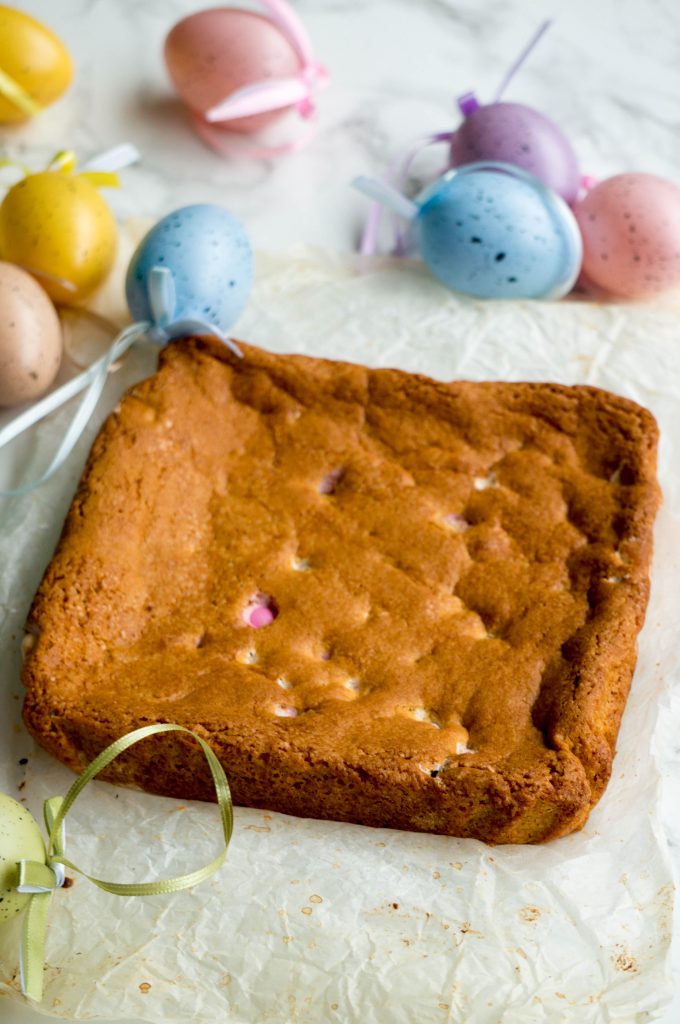 Bak de blondies voor 20-25 minuten tot de randen goudbruin beginnen te worden. | Laat de Paas M&M blondies iets afkoelen voor je hem aansnijd. |