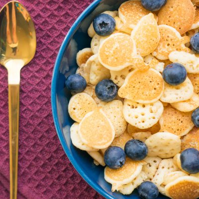 Terug naar de hype van Pannenkoeken Cornflakes. Ik geloof dat het op TikTok is ontstaan en het is duidelijk tijdens de Corona crisis ontstaan want het kost even tijd om een flinke kom te maken. Vervolgens kun je zo een kom met mini pannenkoeken eten met wat boter en stroop (lekkerste warme ahorn siroop) en bijvoorbeeld wat besjes erbij. Ook las ik dat sommige mensen het als echte cornflakes met melk aten. Dit heb ik geprobeerd maar dat was geen succes. Gewoon lekker zo. En voor de kids is het tevens een lekkere snack met wat besjes.