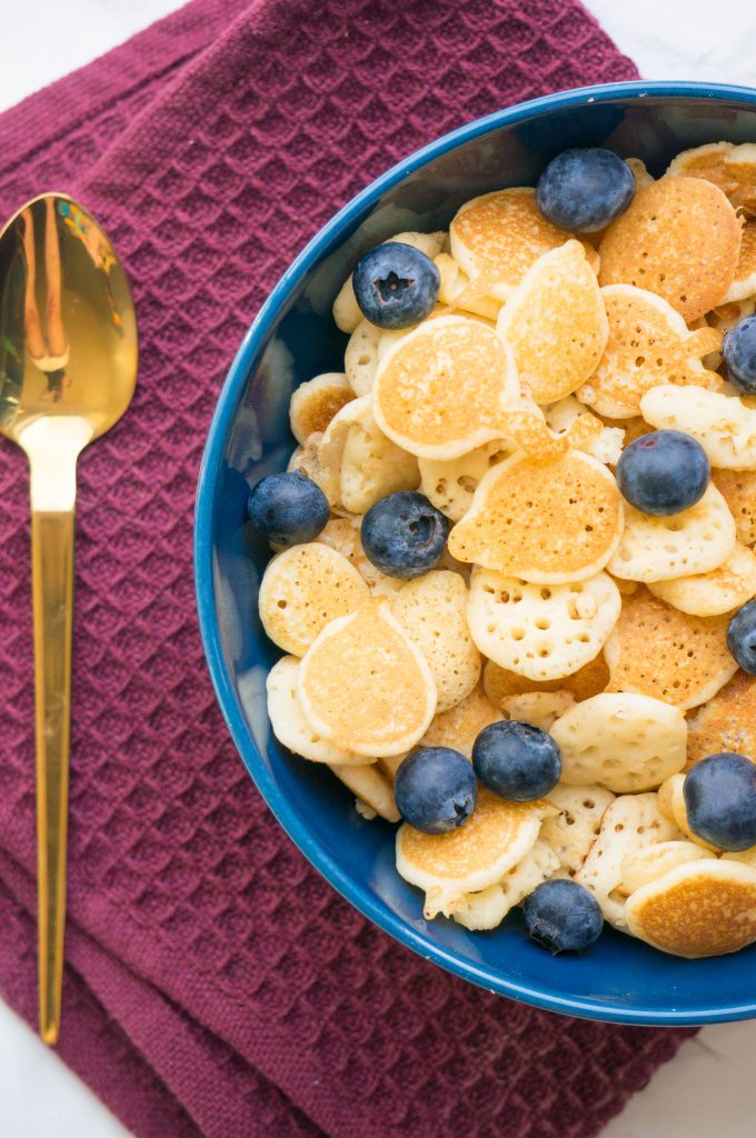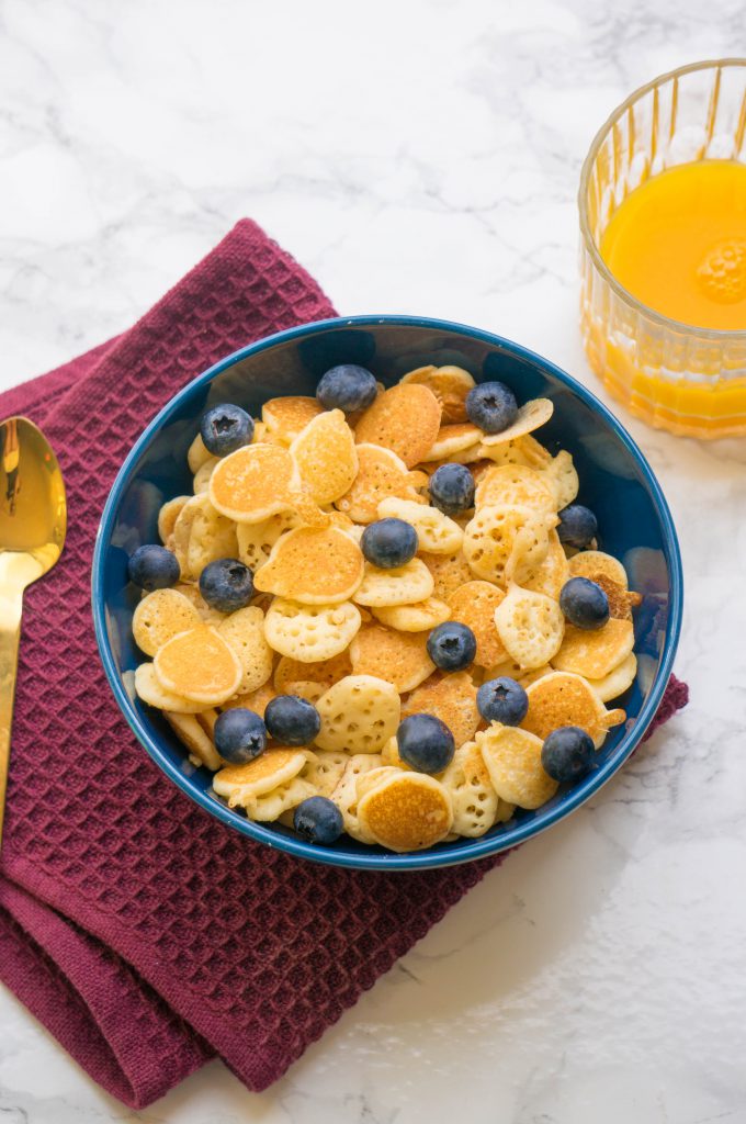Terug naar de hype van Pannenkoeken Cornflakes. Ik geloof dat het op TikTok is ontstaan en het is duidelijk tijdens de Corona crisis ontstaan want het kost even tijd om een flinke kom te maken. Vervolgens kun je zo een kom met mini pannenkoeken eten met wat boter en stroop (lekkerste warme ahorn siroop) en bijvoorbeeld wat besjes erbij. Ook las ik dat sommige mensen het als echte cornflakes met melk aten. Dit heb ik geprobeerd maar dat was geen succes. Gewoon lekker zo. En voor de kids is het tevens een lekkere snack met wat besjes.