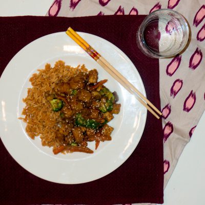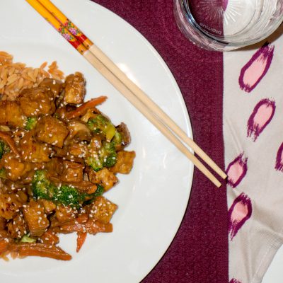 Ik vind het leuk om een beetje te experimenteren met wok sauzen. Vaak genoeg als ik snel wat op tafel wil dan gebruik ik gewoon kant-en-klare wok sauzen, maar ik vind het ook leuk om zelf eens wat te proberen. Dit maal gebruikte ik daar pindasaus voor. Ik keek naar de ingrediënten van mijn kip saté traybake en dacht hoe kan ik dat naar een roerbak saus vertalen. Het resultaat is een aanrader en gezien de kids ook op saté saus dol zijn, vonden ze dit ook lekker. Behalve dan, dat Logan nu weer geen tempeh lekker vind. Gelukkig zat er wel broccoli bij, want daar is hij dol op!