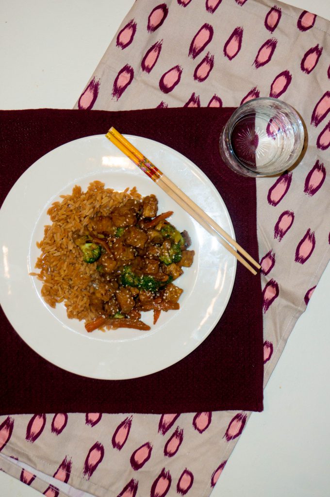 Als ik aan makkelijke maaltijden denk, dan staat roerbak gerechten vaak vooral. Groente, vlees/vis/kip/vleesvervangers en wat saus allemaal in de wok en voilà met wat rijst en noedels erbij je hebt binnen 30 minuten iets gezonds en lekkers op tafel. Mits je uiteraard een suikerrijke saus gebruikt. Over het algemeen vinden mijn kinderen roerbak gerechten ook lekker. Rijst en noedels doen het sowieso wel goed. Ik moet alleen letten op de groente die ik toevoeg: Parker lust geen broccoli en paprika (althans dat denkt ze) en welke saus: Logan vind al snel iets te pittig. Sauzen die het wel goed doen zijn zoet zuur, teriyaki en pindasauzen. Milde sauzen die goed passen bij wat er wordt geserveerd. Op die manier maakte ik pinda tempeh roerbak.