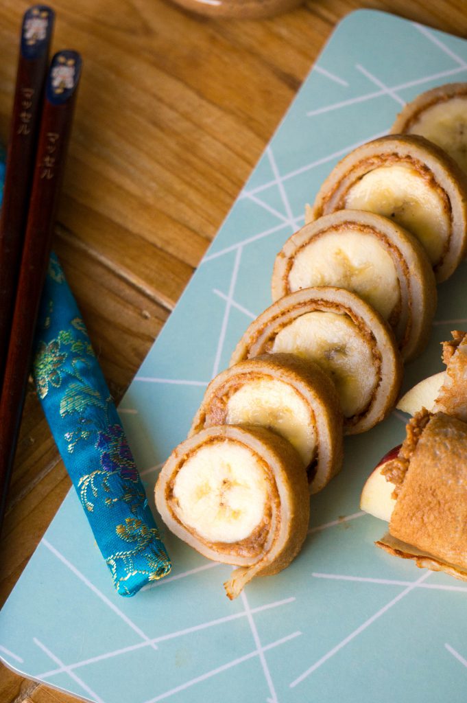 Laat ze lekkere smeren, rollen en het mooi op hun bord leggen. Serveer er chopsticks bij en eens zien hoe zij dit gaan aanpakken. Maakt het eten nog leuker! Mochten twee lossen chopsticks niet lukken, doe dat een elastiekje om het uiteinden van de stokjes. Geef niet te snel in, eten moet een ontdekkingstocht zijn en vooral leuk. Daar hoort wat geknoei ook bij.
