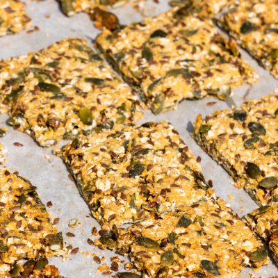 Het is het seizoen van de pompoen en met de pompoen kun je van alles. Je kan er ook alles van gebruiken: van pompoen tot pitten. Die pompoenpitten (gewoon uit de winkel) heb ik dit maal crackers gemaakt. Gezonde crackers waar je kleine lekker op kan knagen. Perfect voor het ontbijt met wat avocado-puree of gewoon zo lekker voorin de lunchbox als snack!