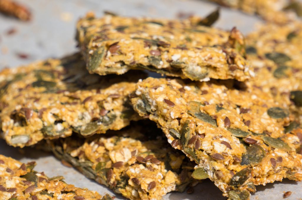 Het is het seizoen van de pompoen en met de pompoen kun je van alles. Je kan er ook alles van gebruiken: van pompoen tot pitten. Die pompoenpitten (gewoon uit de winkel) heb ik dit maal crackers gemaakt. Gezonde crackers waar je kleine lekker op kan knagen. Perfect voor het ontbijt met wat avocado-puree of gewoon zo lekker voorin de lunchbox als snack!