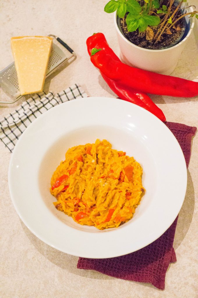 Op woensdag eten wij altijd pasta. Woensdag is voor ons een hectische dag, waar alles draait om een snelle en makkelijke maaltijd die max 20 minuten duurt. Mijn man moet met kids naar zwemles en van opvang halen en ik kom laat thuis. Pasta it is. Nu zijn er afgelopen periode wat woensdagen geweest dat ik wel thuis was en op zo’n woensdag ontstond dit recept. Het idee: spaghetti maken, maar ik had geen vega gehakt en bijna geen groente. Vond ik saai. Wat ik wel had was orzo en paprika en dus besloot ik een nieuw orzo recept te proberen: romige paprika orzo.