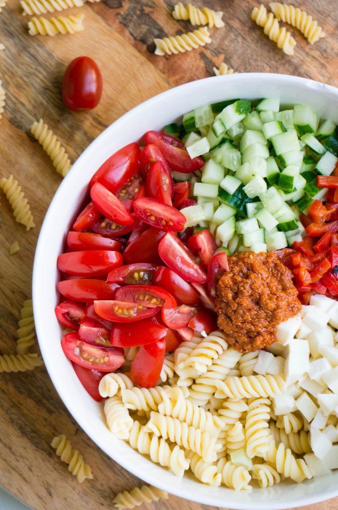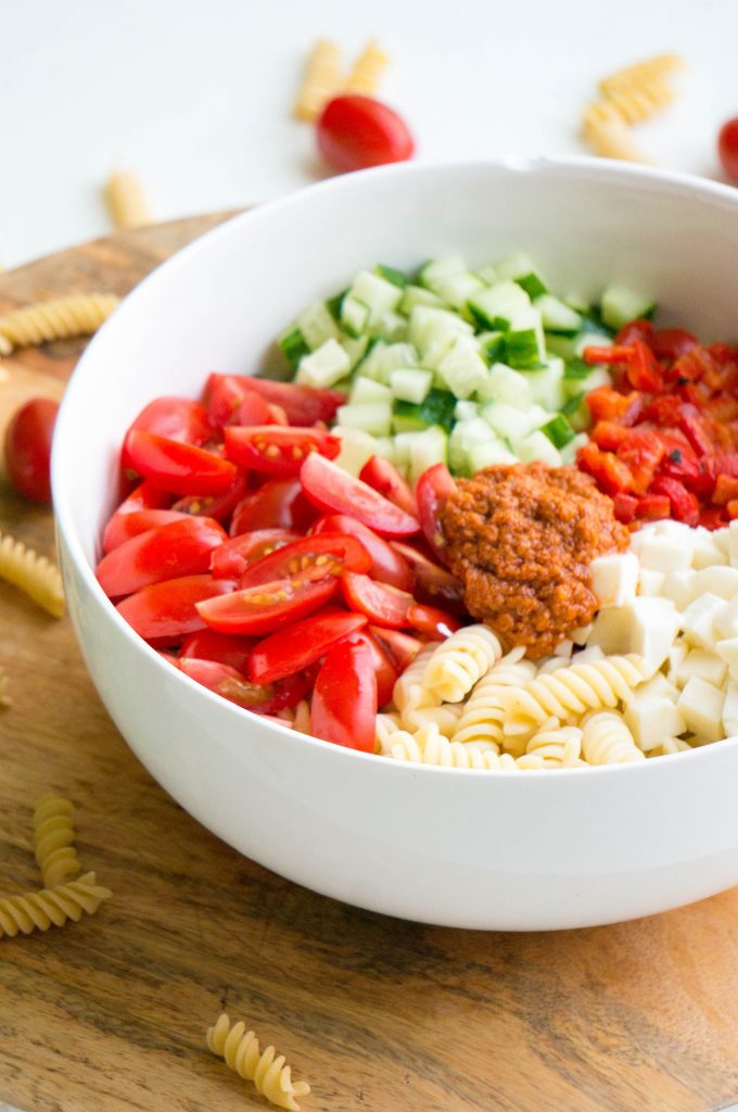 In de zomer eten wij graag salades, maar hoe maak je nou een salade die jouw kinderen ook eten? Mijn Snelle Rode Pesto Pastasalade is altijd een succes! Logan en Parker houden sowieso van pasta en door het gebruik van rode pesto creëer ik meer het idee van rode pastasaus. Door de pasta gaan allemaal ingrediënten die mijn kids zo uit het vuistje eten. So what is not to love. Een snelle salade, die perfect is als maaltijd of natuurlijk mee kan voor een picknick lunch.