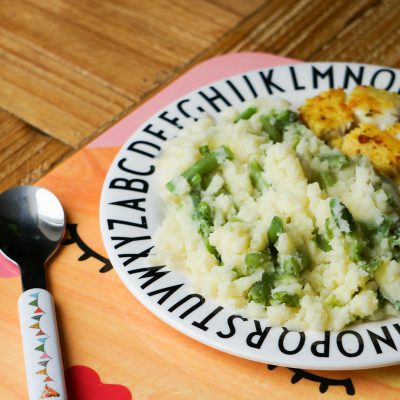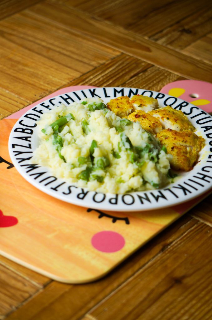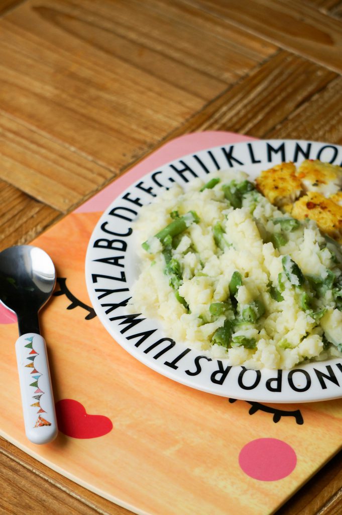 Op maandag eten we meestal AVG (aardappelen, vlees en groenten), waar we vaak wel wat van overhouden. Die leftovers kan ik vaak door de weeks nog een keer voor meneer gebruiken. Zo maakte ik van wat leftover aardappels en nog wat sperziebonen uit de vriezer in 10 minuten een sperziebonen stamppot. Natuurlijk gaat dat er wel in bij onze kleine man! De vis die we hadden vond meneer wel lekker dus kreeg hij hem met een gekruiden tilapia filet. Het bord was zoals verwacht helemaal leeg. Ach zo lang hij ze groenten en aardappels goed eet (plus de bonus van vis) hoor je deze mama niet klagen!