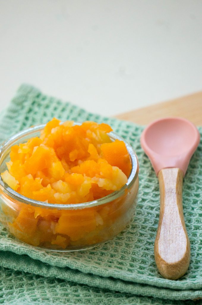Uiteraard kun je als je voor de rest van het gezin hutspot maakt, wel wat wortels apart houden en deze met een aardappel pureren voor jouw baby. Een simpele oplossing om geen apart gerecht te hoeven te maken. Vanaf 6 maanden kun je je baby nog een portie van 50 gram geven en langzaam naar de 100 gram gaan. Het recept hieronder is daarom ook voor 2 tot 4 porties. De rest kun je uiteraard gewoon invriezen of tot 3 dagen in de koelkast bewaren.