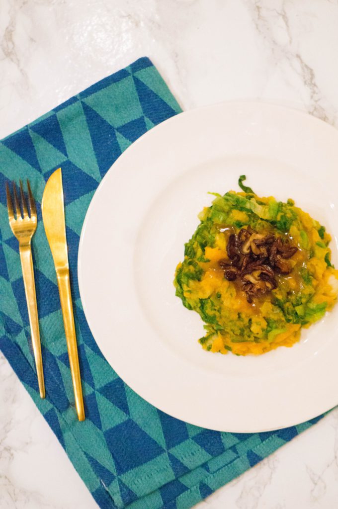 Nou hoort bij andijvie stamppot spekjes. Maar gezien ik deze maand geen vlees eet heb ik in plaats van de gebruikelijke spekjes, gebakken shiitake paddenstoelen toegevoegd. Zoals ook te zien op de afbeelding. Super lekker en de perfecte vervanger. Mijn kinderen zijn niet dol op paddenstoelen, dus hen heb ik zonder geserveerd. Je bent echter vrij in of je wel of geen shiitake of misschien wel spekjes toevoegt. Het gaat hier om de stamppot.